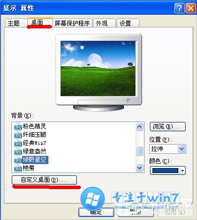 2、选择,选择桌面,在进入自定义桌面。
