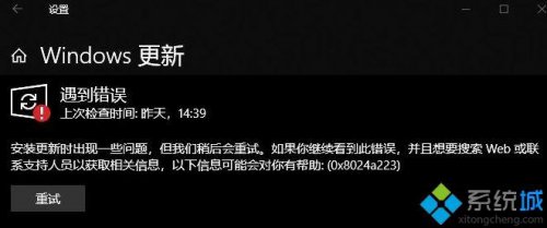 阅读全文微软最近退从了win10 1809正式版,许多用户都纷纷选择升级更新,但是有不少用户发现在更新win10 1809版系统后出现错误0x8024a223,这是怎么回事呢,经过分析是由于网络原因或者导致文件